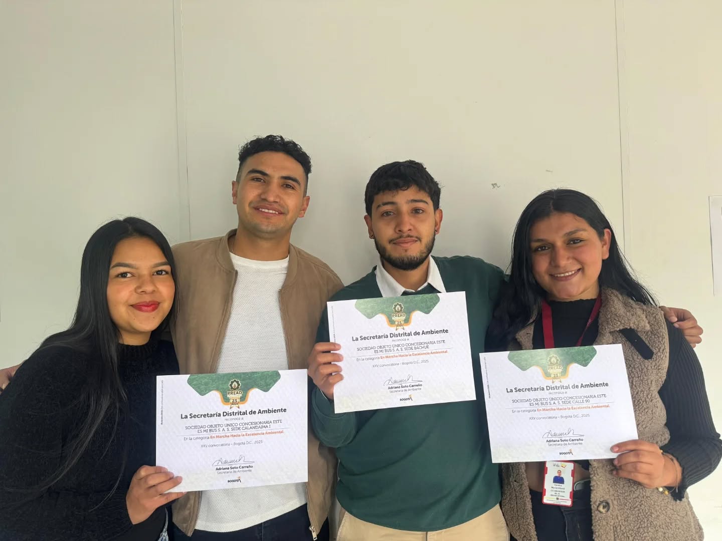 En Este es Mi Bus nos llena de orgullo anunciar que obtuvimos la certificación del Programa de Excelencia Ambiental Distrital (PREAD) en nuestros patios Calle 90, Bachué y Calandaima I, un reconocimiento que reafirma nuestro compromiso con el cuidado del medio ambiente y la gestión responsable de nuestros procesos. 🌻🌹
