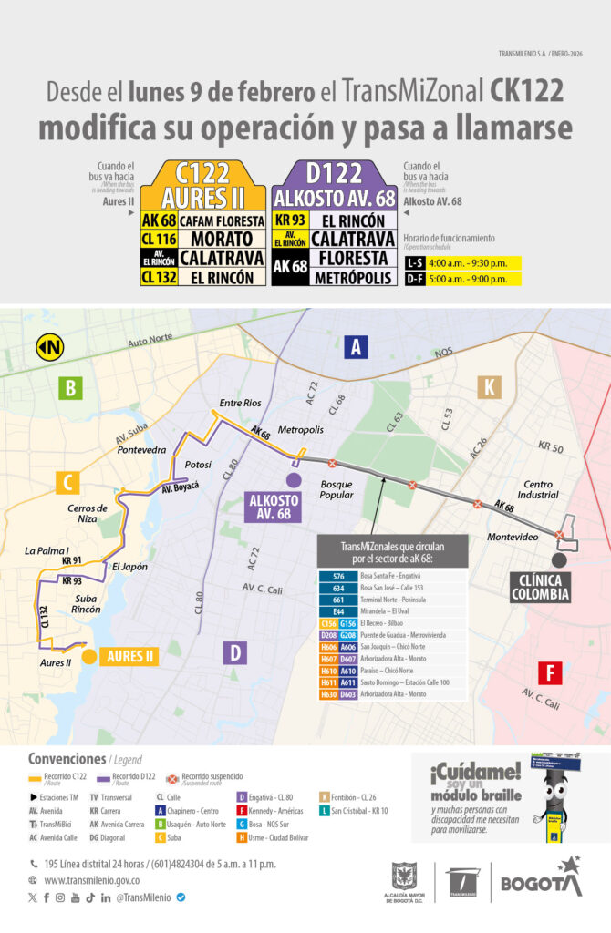 By Sandra Casallas febrero 2, 2026 Cambios rutas 0 Comment El TransMiZonal CK122 modifica su operación.